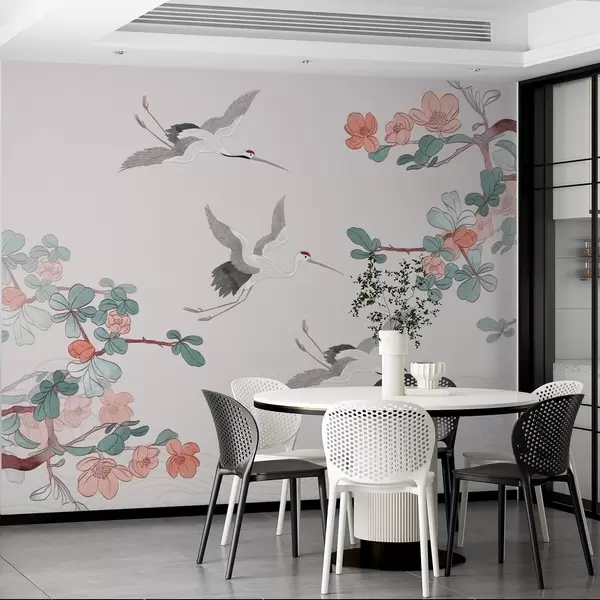 Τοιχογραφίες Κλαδιά με λουλούδια και γερανούς σε ιαπωνικό στυλ Nr. w03103