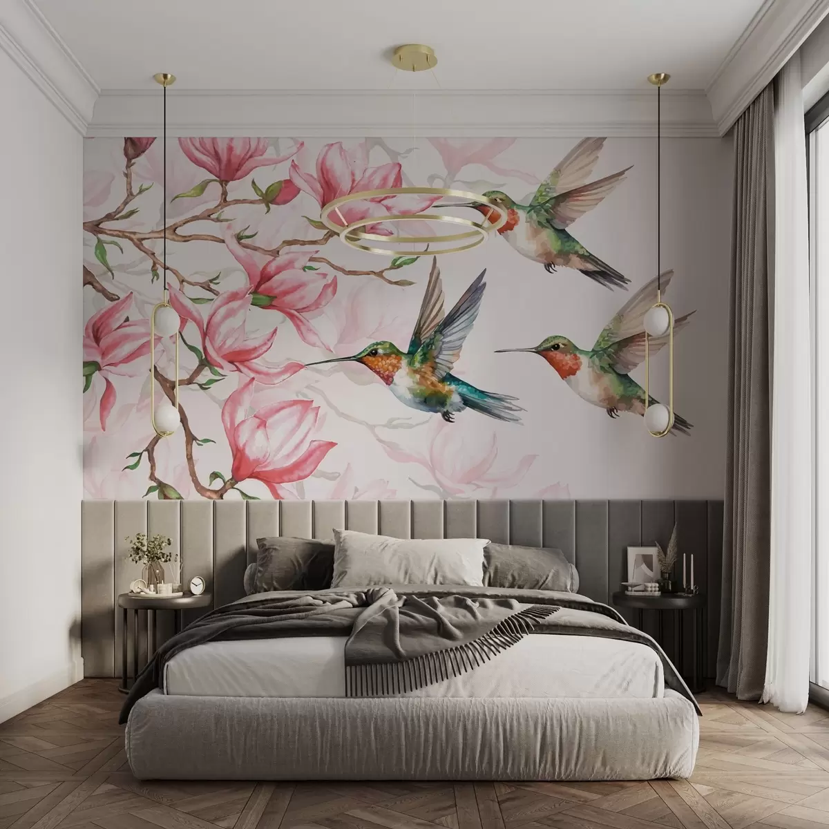 Τοιχογραφίες Ανθισμένες μανόλιες και κολιμπρί Nr. w03104