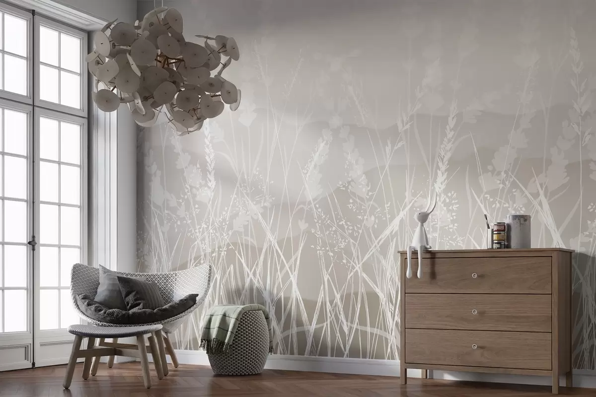 Τοιχογραφίες Αφηρημένη εικόνα από γρασίδι και άγρια λουλούδια Nr. w03133
