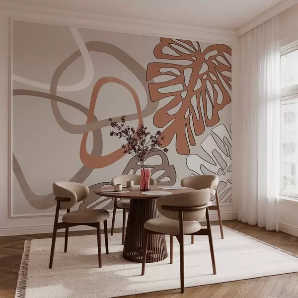 Τοιχογραφίες Φύλλα Monstera και αφηρημένες φιγούρες Nr. w03277