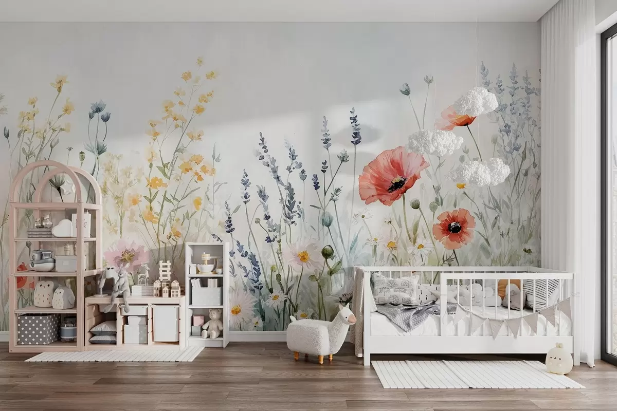 Τοιχογραφίες αγριολούλουδα και παπαρούνες στην τεχνική των εγκεφαλικών επεισοδίων Nr. w03281
