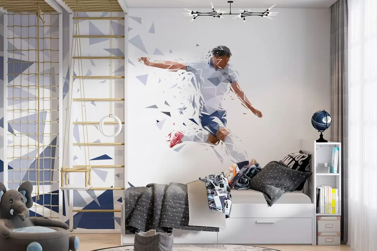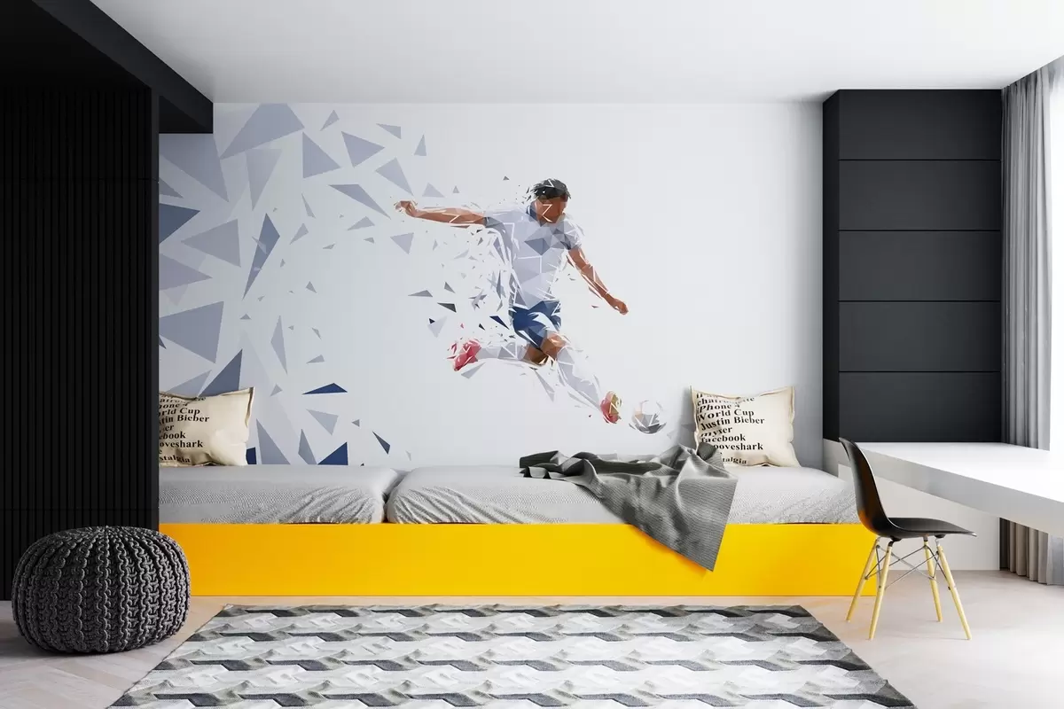 Τοιχογραφίες Δυναμικός ποδοσφαιριστής σε στυλ low-poly, χτυπώντας την μπάλα Nr. w03289