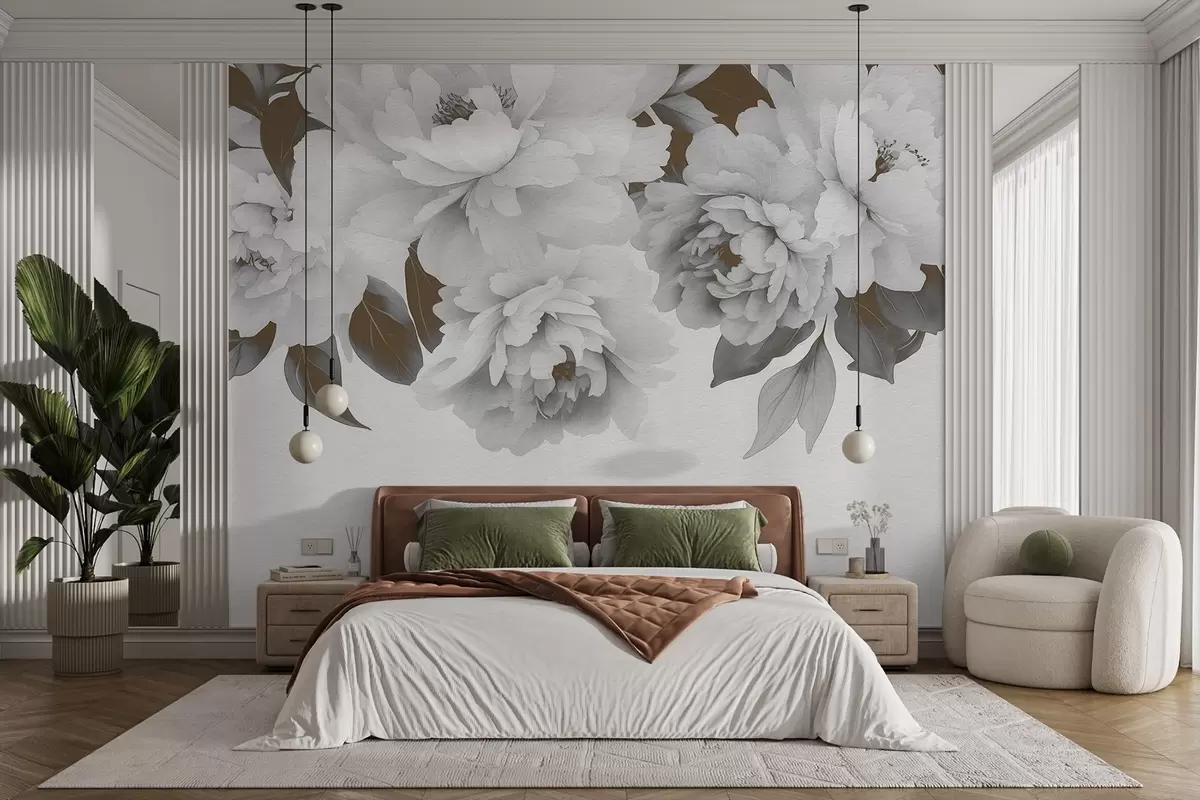 Τοιχογραφίες Λεπτή υδατογραφία vintage παιώνιες Nr. w03317v1