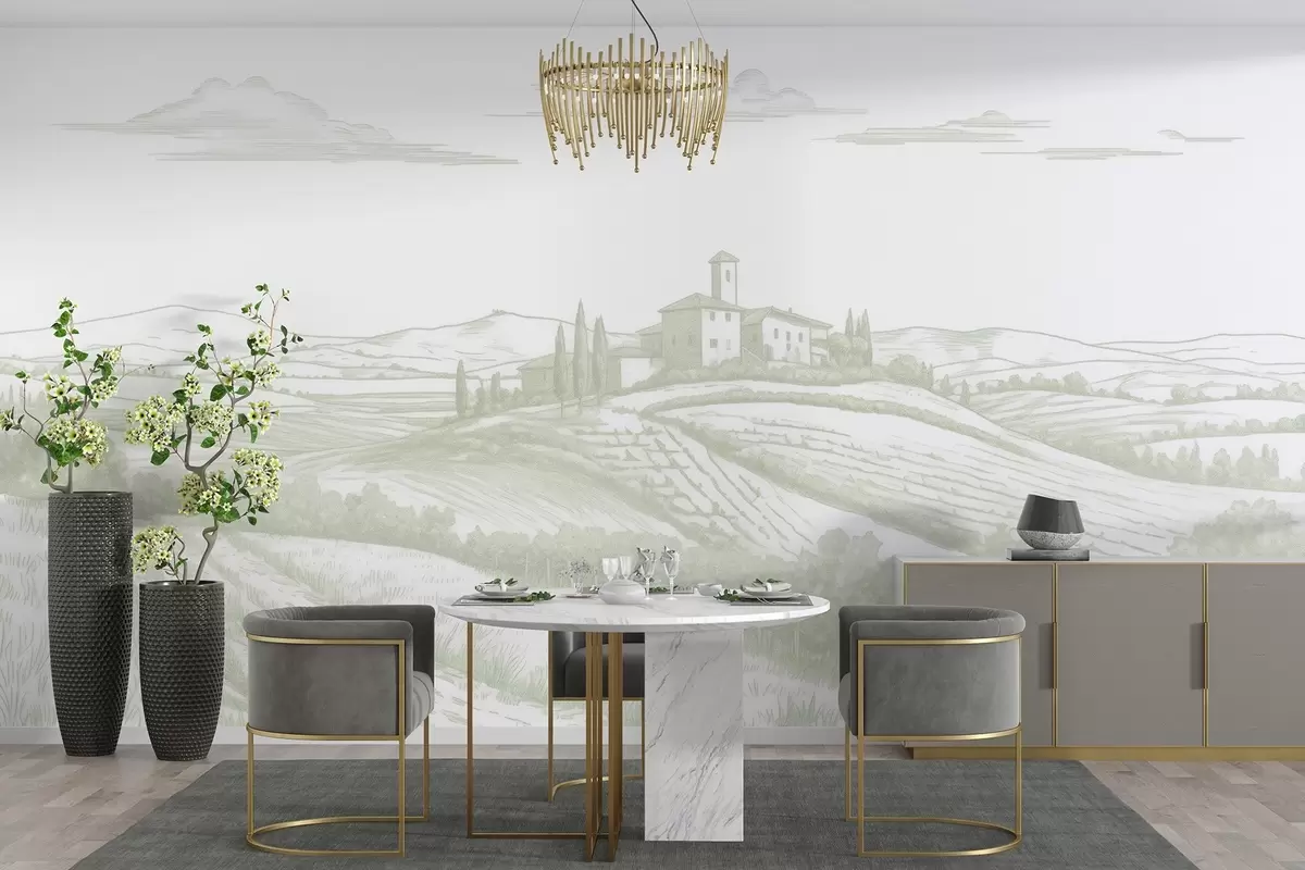 Τοιχογραφίες Τοσκάνη τοπία, Ιταλία, αμπελώνες, φύση, παλιό κάστρο, πράσινα χρώματα Nr. w03349v2