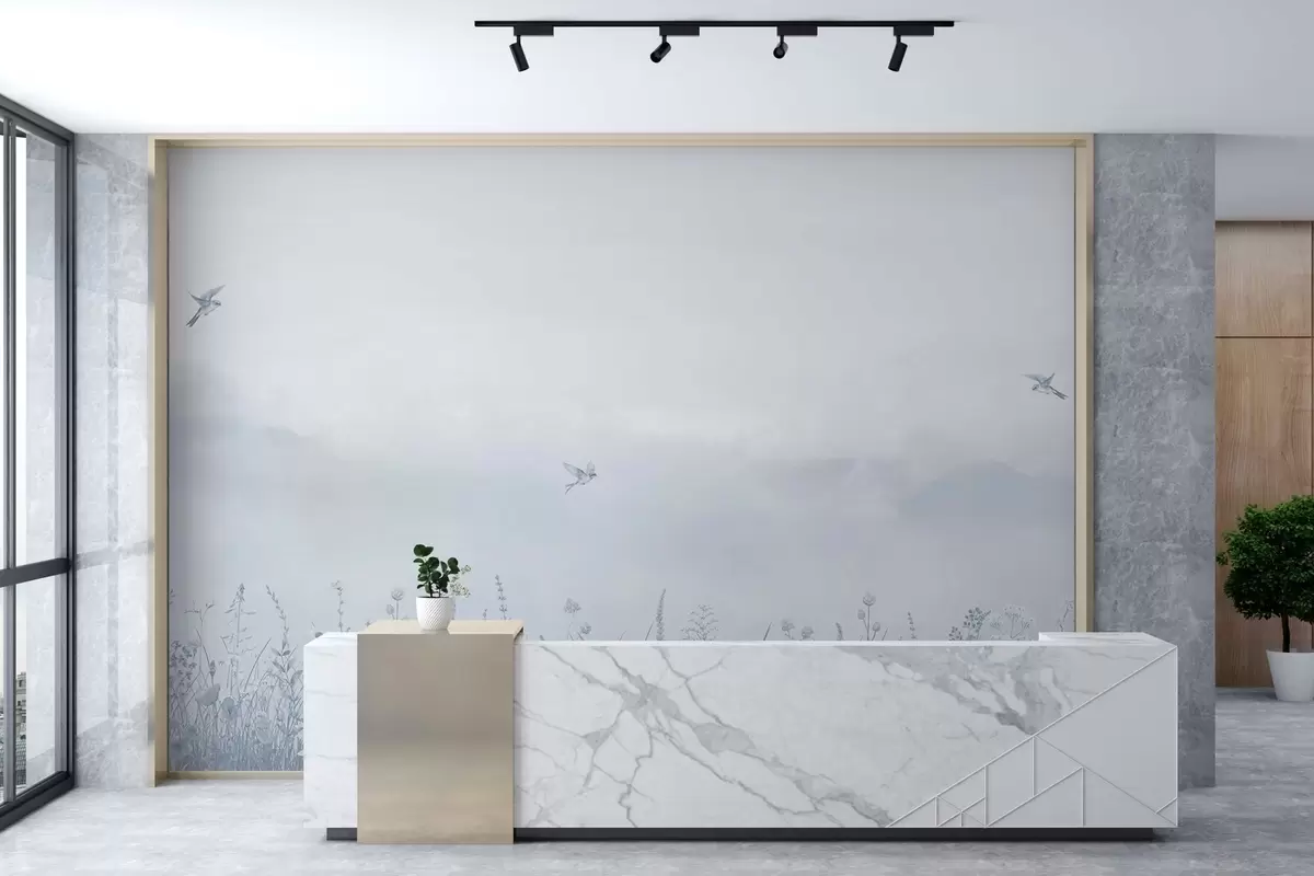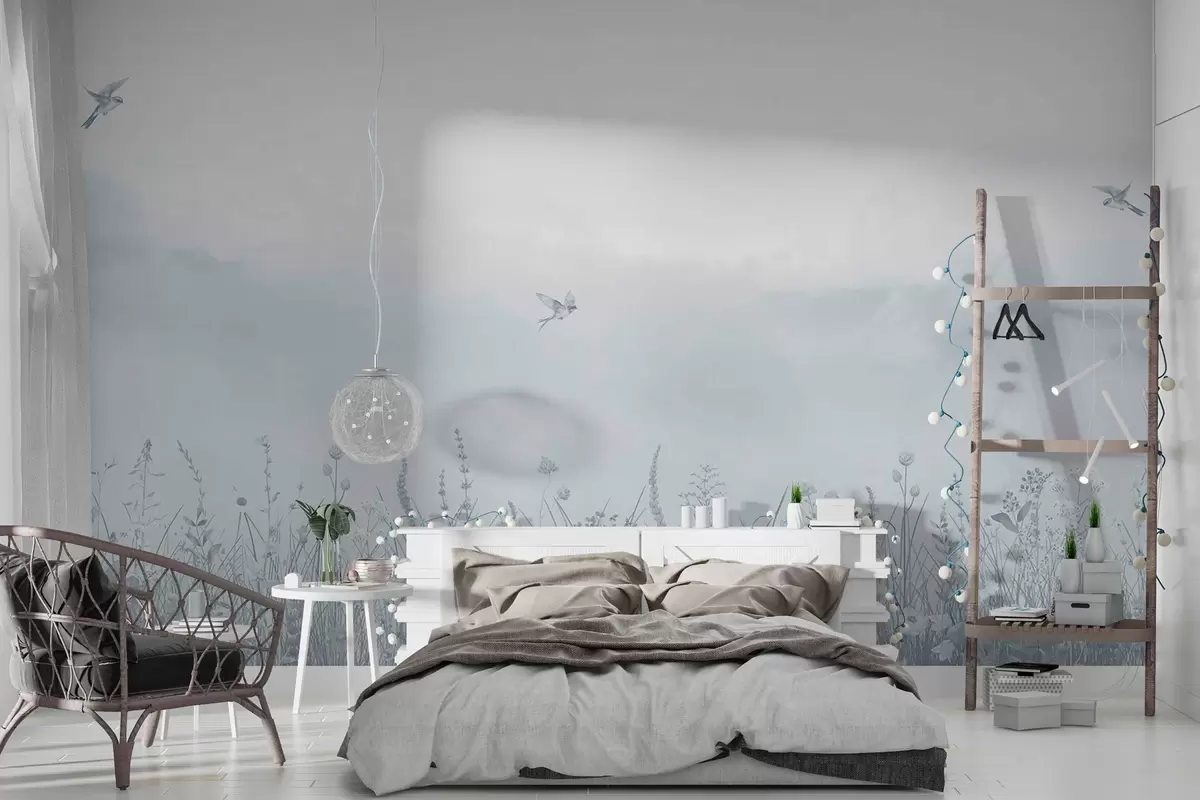 Τοιχογραφίες Άγρια λουλούδια και θολός ουρανός σε μπλε τόνους Nr. w03391v1
