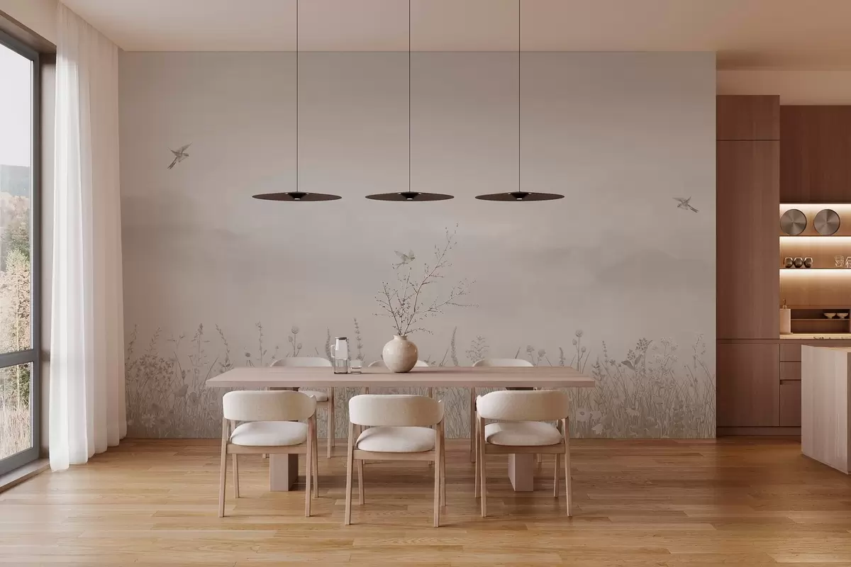 Τοιχογραφίες Αγριολούλουδα και θολός ουρανός σε μπεζ τόνους Nr. w03391v2