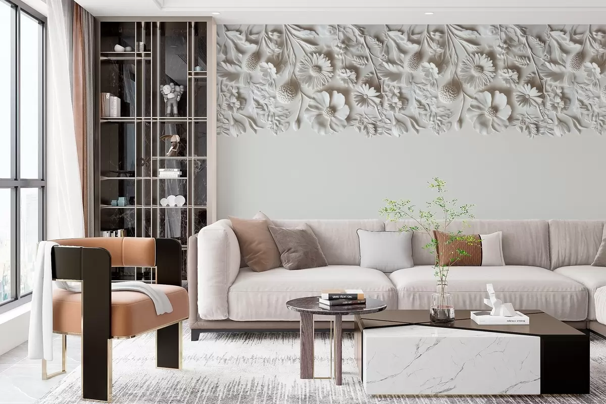 Τοιχογραφίες Απομίμηση λουλουδιών σε ανάγλυφο στην κορυφή σε χρώμα γάλακτος Nr. w03398v1