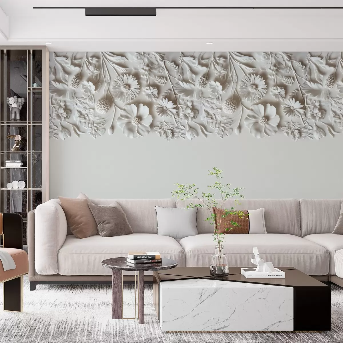 Τοιχογραφίες Απομίμηση λουλουδιών σε ανάγλυφο στην κορυφή σε χρώμα γάλακτος Nr. w03398v1