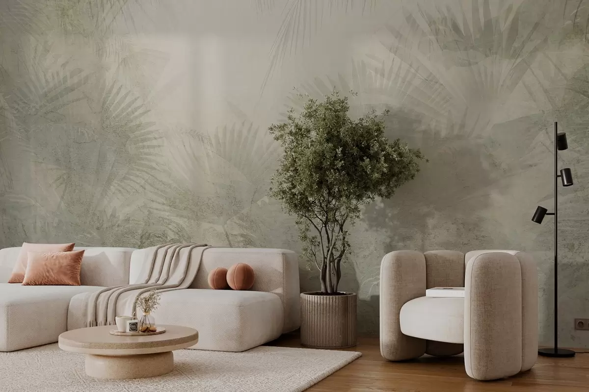 Τοιχογραφίες Υφή τροπική ρετρό ταπετσαρία σε μπεζ αποχρώσεις Nr. w03399