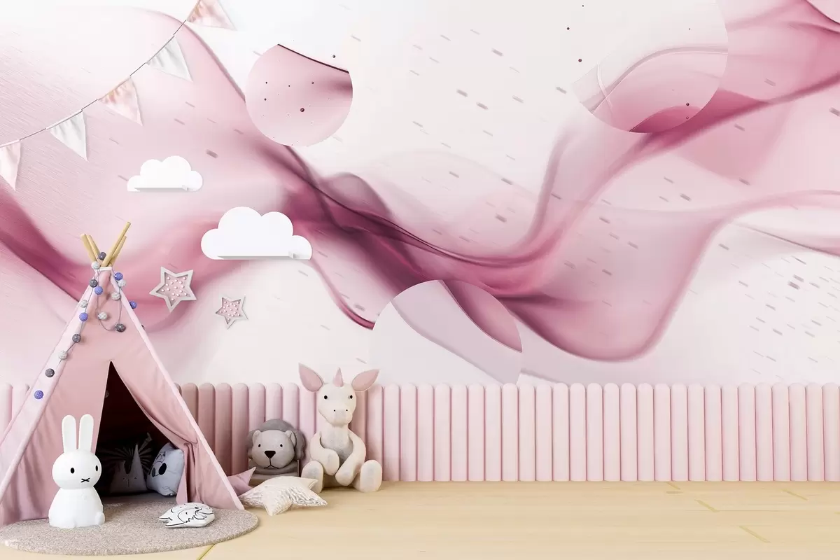 Τοιχογραφίες Γεωμετρικά κύματα αφαίρεση, θολό στυλ, διαβάθμιση, ροζ χρώματα Nr. w03404v1