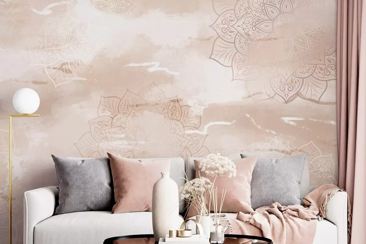 Τοιχογραφίες Μαντάλες σε παστέλ φόντο, ζωντανές πινελιές, μπεζ χρώματα Nr. w03409