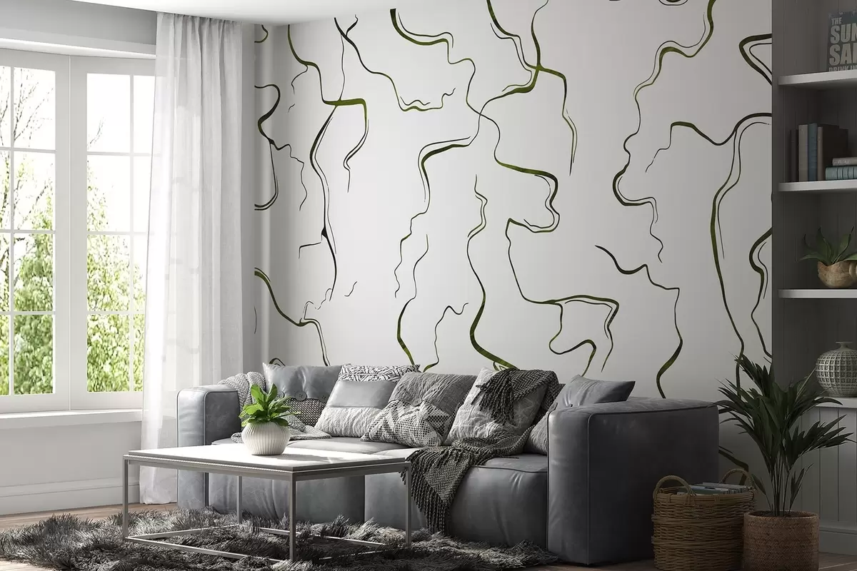 Τοιχογραφίες Γεωμετρικές γραμμές, στυλ μελάνι, αφαίρεση, πράσινα χρώματα Nr. w03436