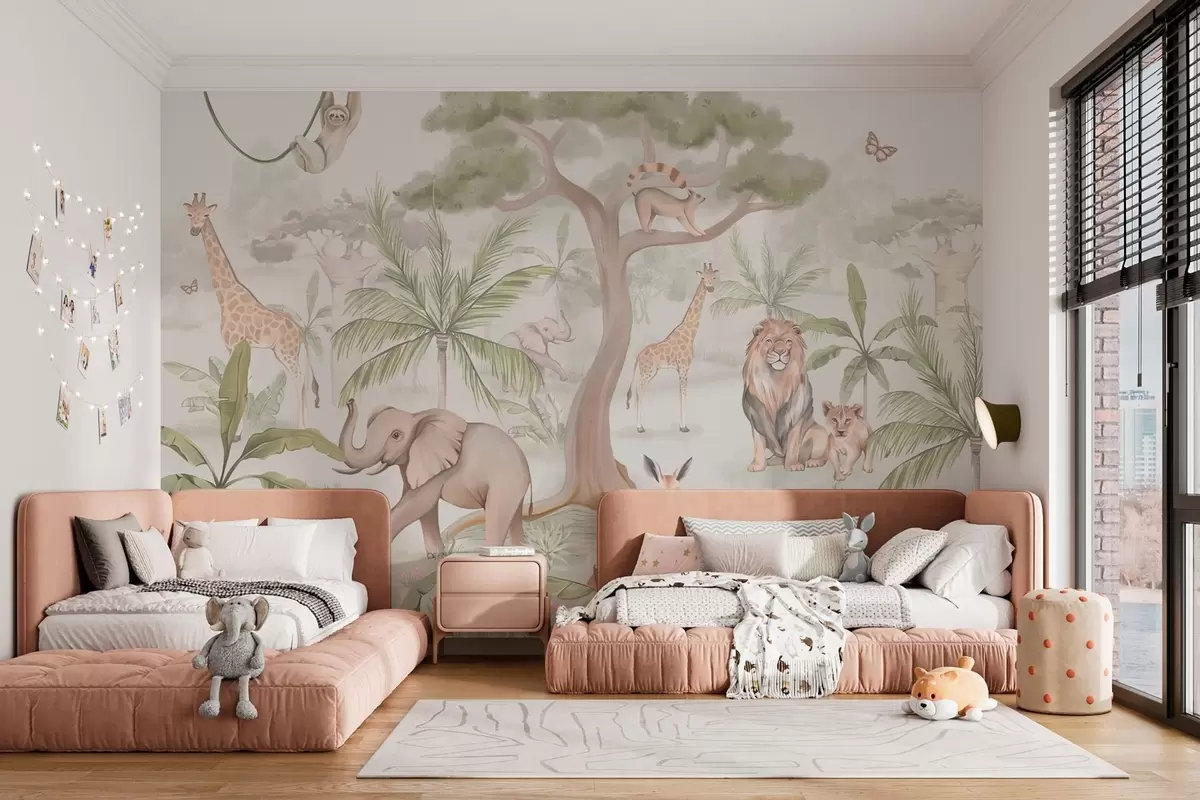 Τοιχογραφίες Πανόραμα ζούγκλας με ζώα Nr. w03444