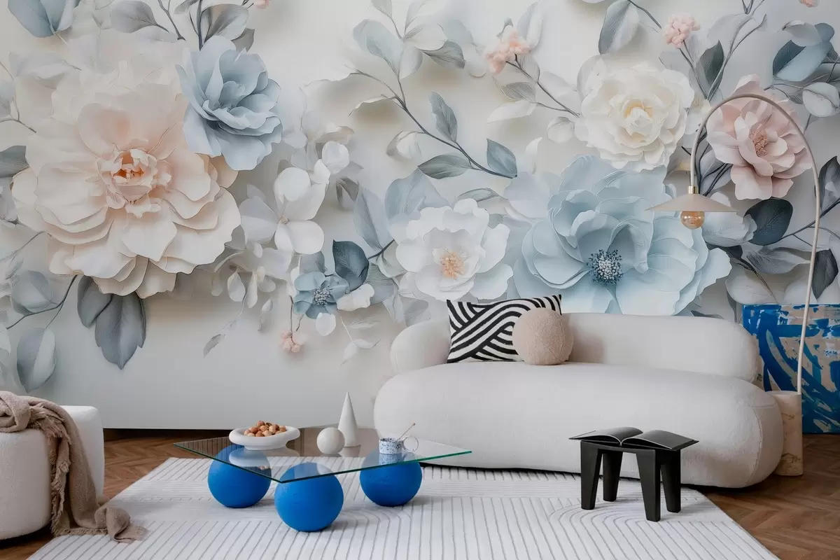 Τοιχογραφίες ντελικάτα αέρινα λουλούδια με εφέ όγκου σε στυλ ελαιογραφίας Nr. w03457