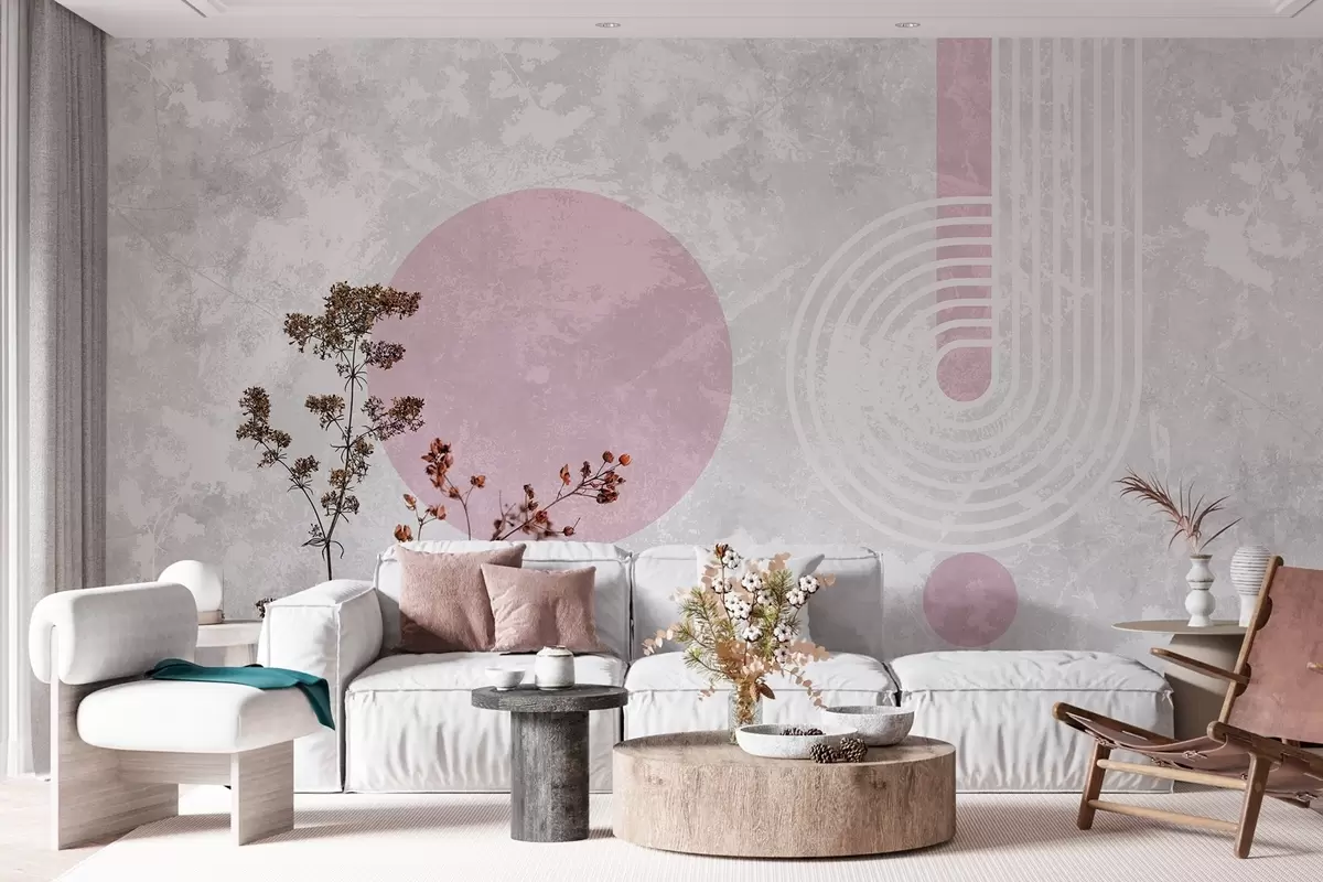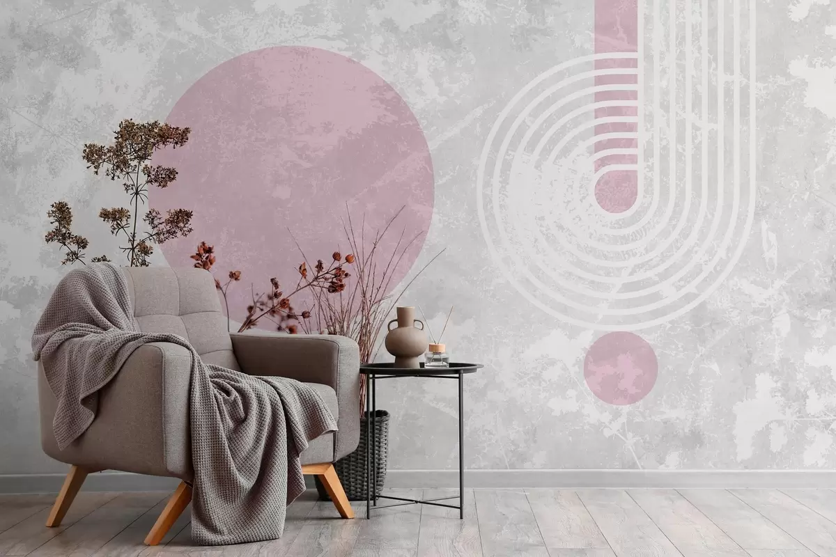 Τοιχογραφίες grunge μοντέρνα γεωμετρία με αποξηραμένα λουλούδια Nr. w03459