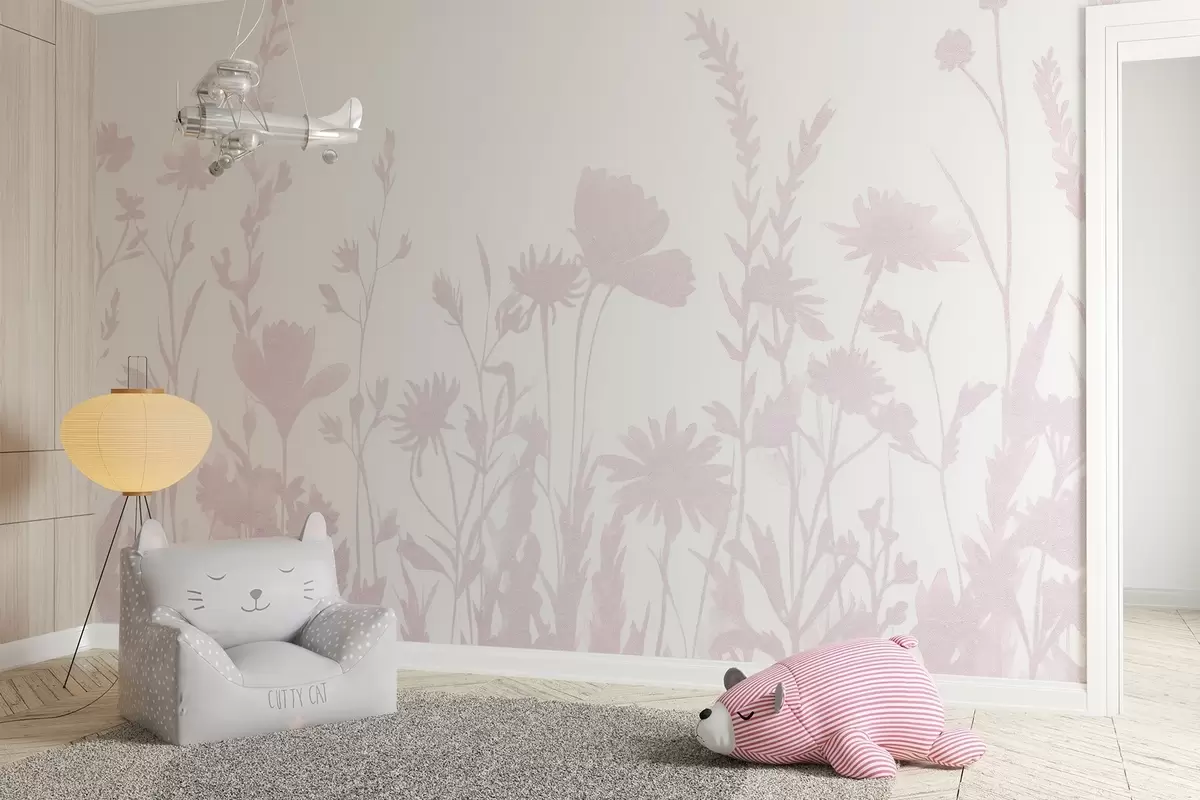 Τοιχογραφίες Καλοκαιρινό λιβάδι, ρουστίκ, λουλούδια, ροζ παλέτα χρωμάτων Nr. w03670v2