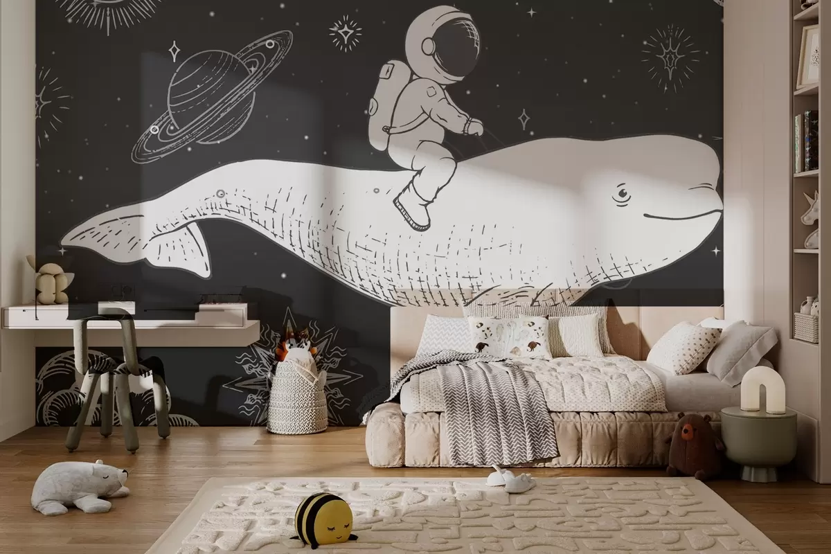 Τοιχογραφίες Διαστημική φάλαινα με αστροναύτη Nr. w03687