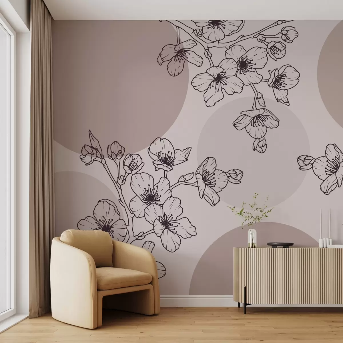 Τοιχογραφίες Κλαδιά με λουλούδια σε χρωματιστούς κύκλους σε καφέ τόνους Nr. w03712