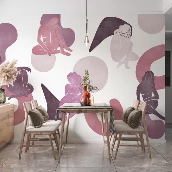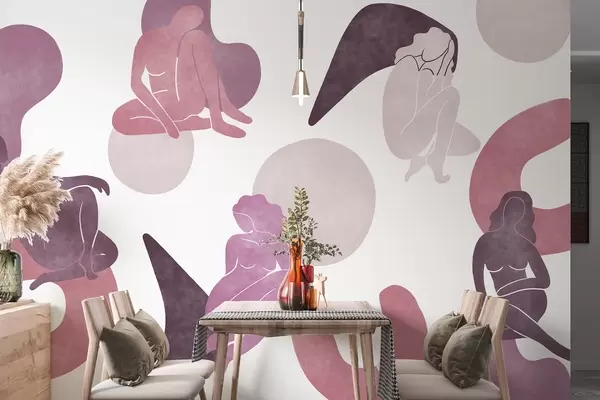 Τοιχογραφίες Γεωμετρικές αφαιρέσεις με γυναικείες σιλουέτες, boho στυλ, ροζ, μπεζ, μοβ Nr. w03753v3