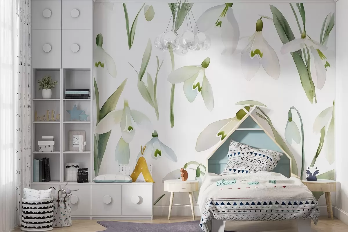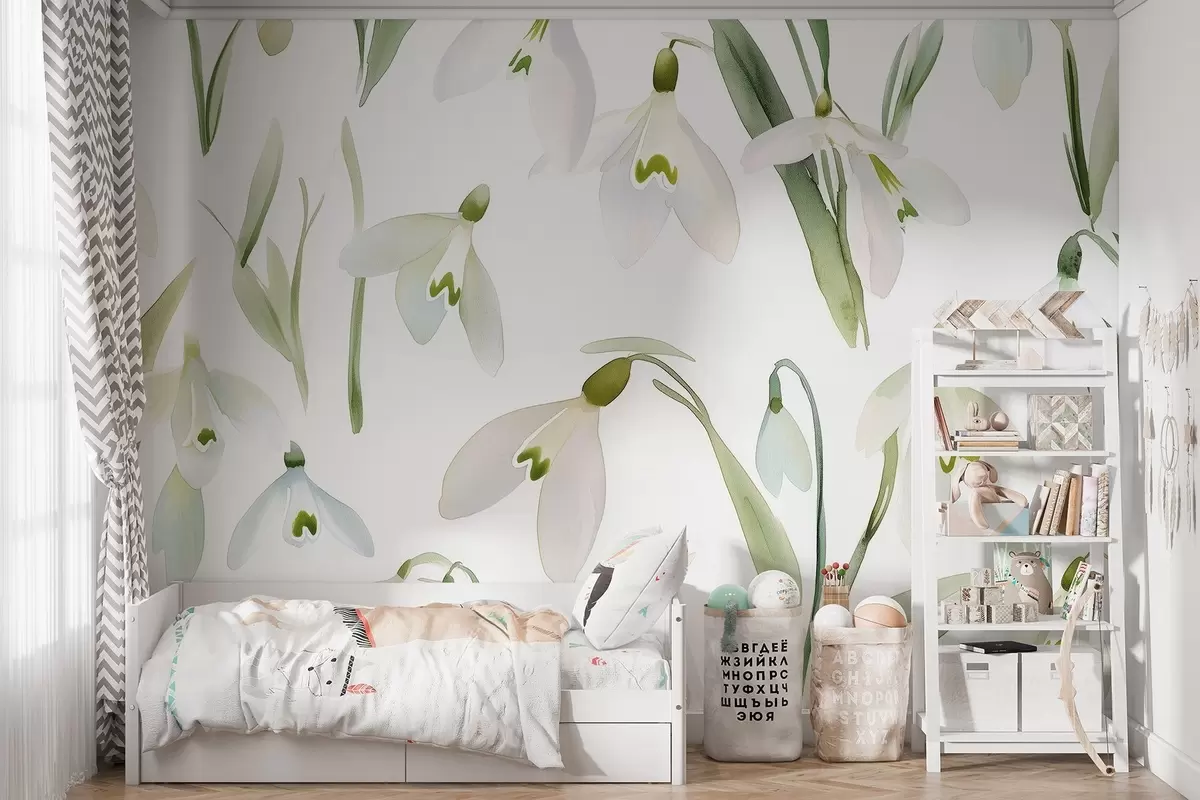 Τοιχογραφίες Χιονόχορτο λουλούδια σε στυλ ακουαρέλας, φυσικά χρώματα Nr. w03754
