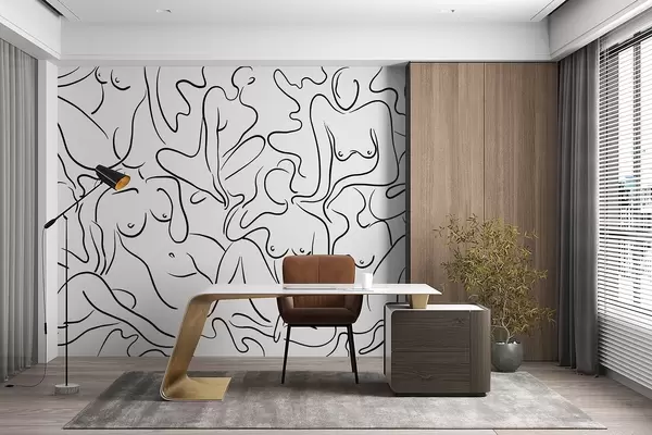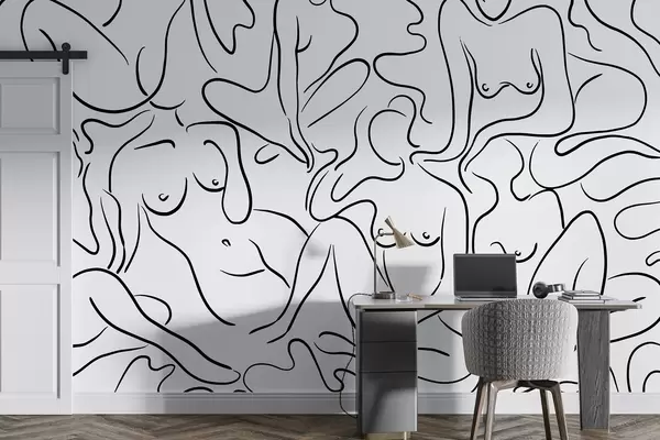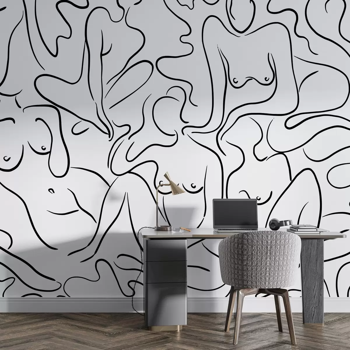 Τοιχογραφίες Γραμμικό σχέδιο σιλουέτες γυναικείων σωμάτων, αφαίρεση, μαύρο χρώμα Nr. w03755