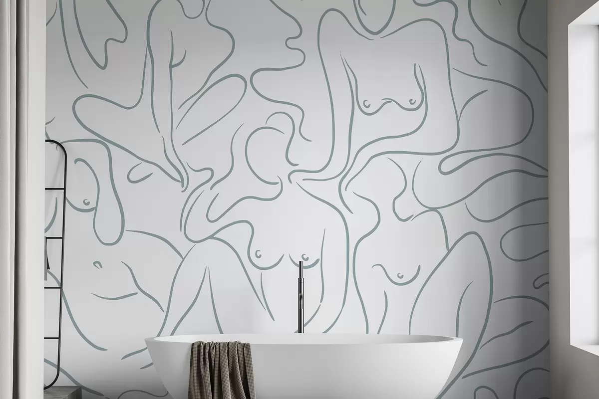 Τοιχογραφίες Γραμμικό σχέδιο ανατομικές σιλουέτες, αφαίρεση, μπλε χρώμα Nr. w03755v1