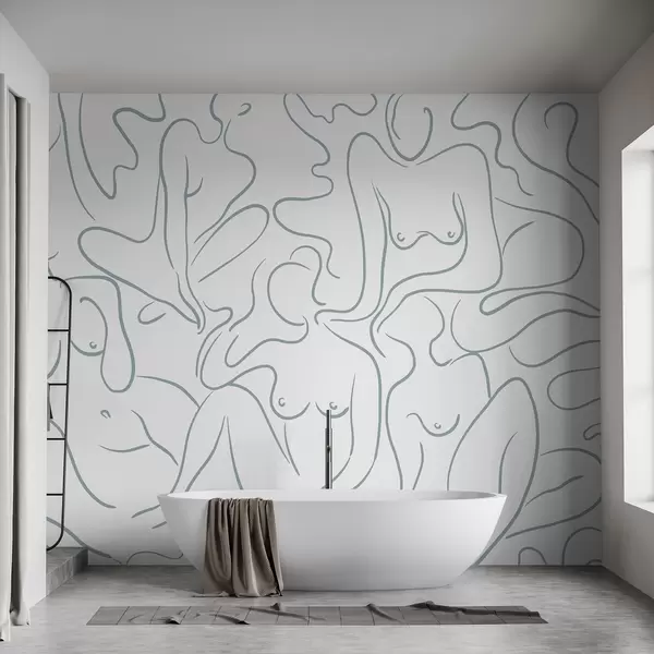 Τοιχογραφίες Γραμμικό σχέδιο ανατομικές σιλουέτες, αφαίρεση, μπλε χρώμα Nr. w03755v1