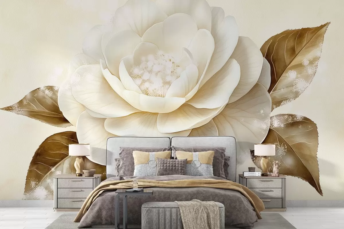 Τοιχογραφίες Όμορφο λουλούδι παιώνιας σε μπεζ χρώματα Nr. w03757