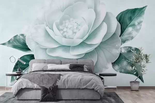 Τοιχογραφίες Όμορφο λουλούδι παιώνιας σε μπλε χρώματα Nr. w03757v1