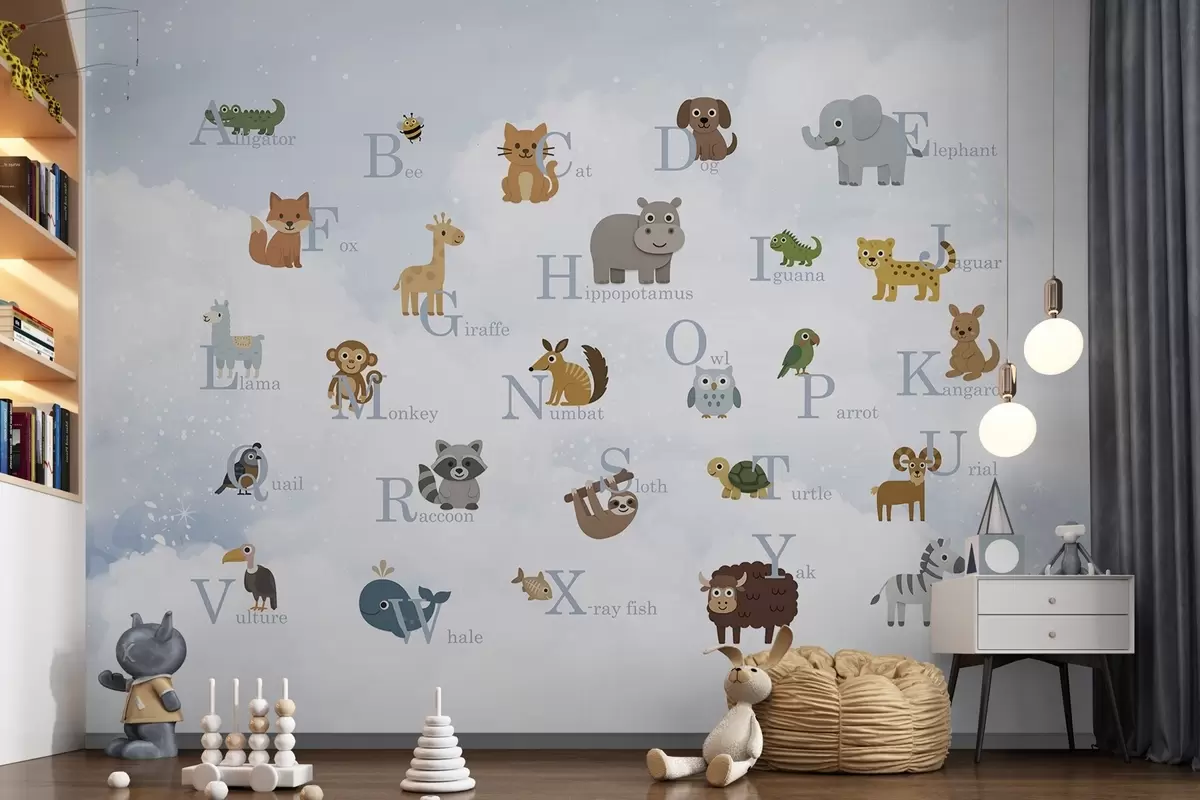 Τοιχογραφίες Αλφάβητο με μπλε γράμματα στο φόντο του ουρανού Nr. w03810v1