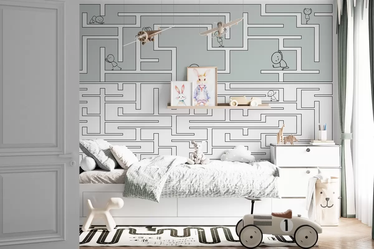 Τοιχογραφίες Λαβύρινθος σε ανοιχτό πράσινο και λευκό Nr. w03873v4
