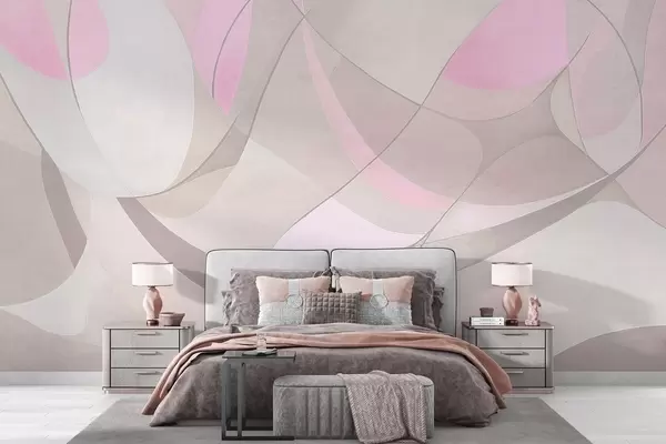 Τοιχογραφίες Γεωμετρική αφαίρεση, σιωπηλά ροζ και μπεζ χρώματα Nr. w03878v1