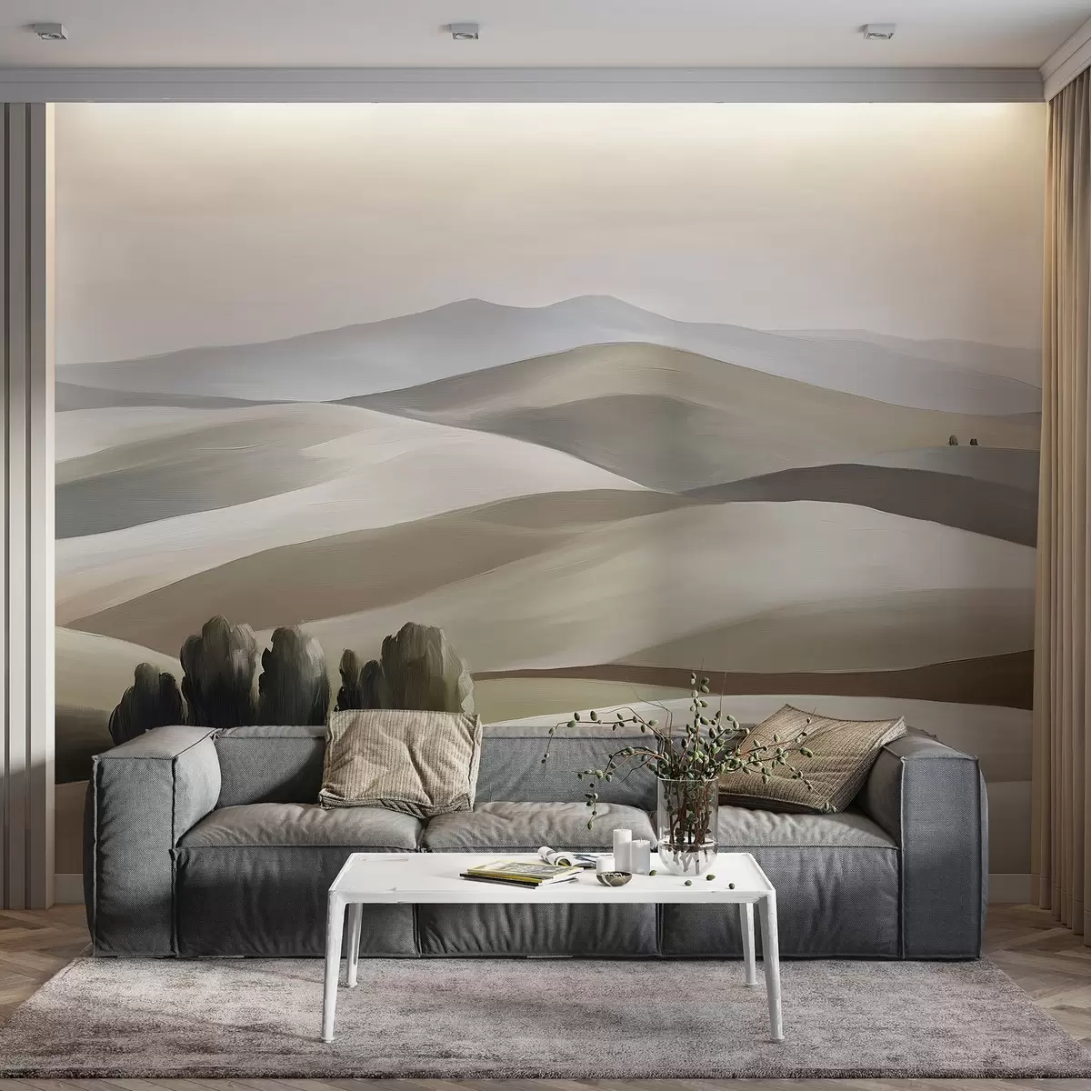 Τοιχογραφίες Τοπία με δέντρα, Τοσκάνη, μπεζ και γκρι χρώματα, στυλ λάδι Nr. w03880v1