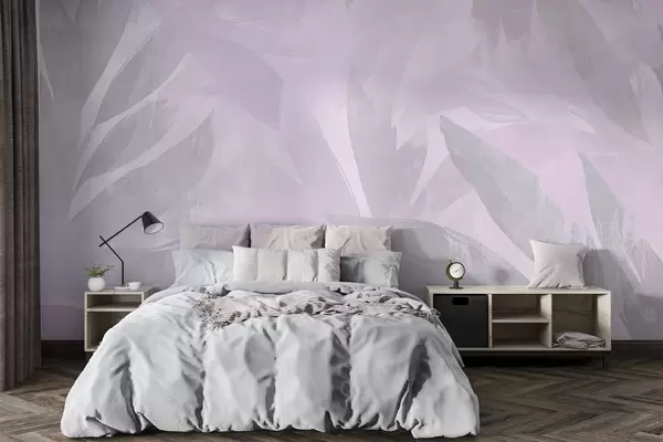 Τοιχογραφίες Τροπικά φύλλα, λουλούδια, φοίνικες, παστέλ στυλ, μοβ χρώματα Nr. w03881v1