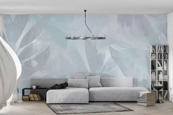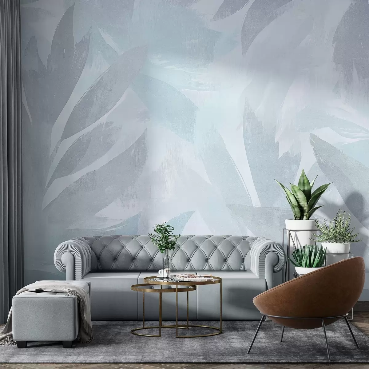 Τοιχογραφίες Τροπικά φύλλα, λουλούδια, φοίνικες, παστέλ στυλ, μπλε χρώματα Nr. w03881v2