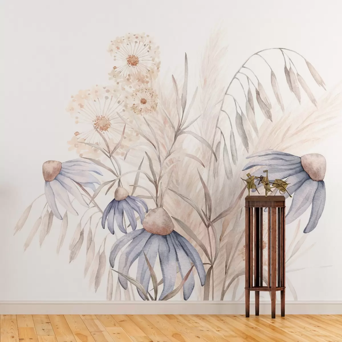 Τοιχογραφίες Πικραλίδες και λουλούδια ανάμεσα σε ξηρά βότανα Nr. w03908
