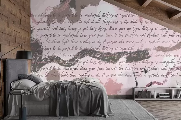 Τοιχογραφίες Σχεδιασμός με εμπνευσμένα εισαγωγικά, αφαίρεση, ροζ χρώματα Nr. w03909v3