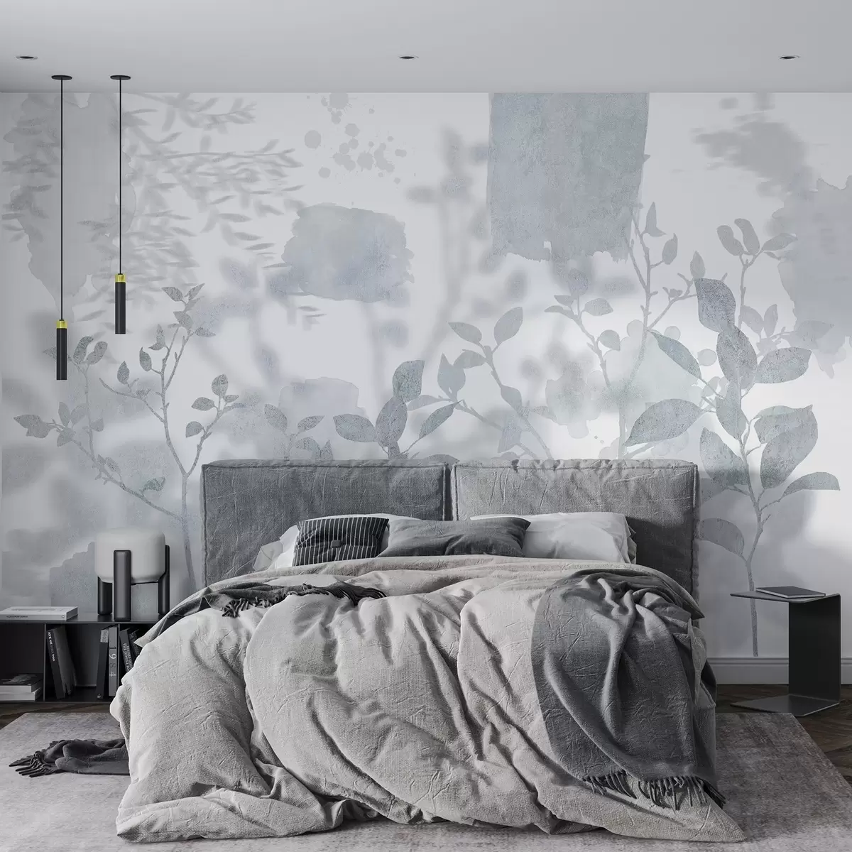 Τοιχογραφίες Δέντρα σιλουέτες, κλαδιά, φύση, ακουαρέλα, μπλε χρώματα Nr. w03911v2