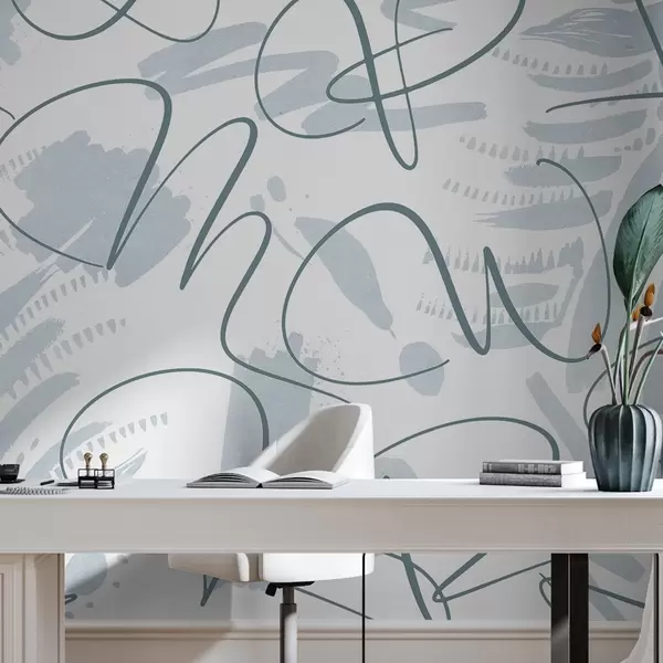 Τοιχογραφίες Καλλιγραφική αφαίρεση με γράμματα, πινελιές, μπλε χρώμα Nr. w03913v1