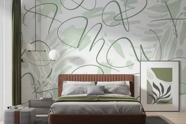 Τοιχογραφίες Καλλιγραφική αφαίρεση με γράμματα, πινελιές, πράσινο χρώμα Nr. w03913v3