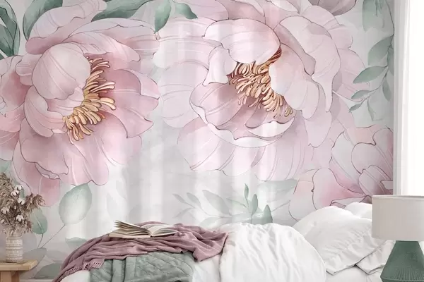 Τοιχογραφίες Ροζ παιώνιες απομίμηση νερομπογιάς Nr. w03932v2