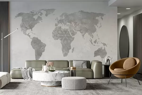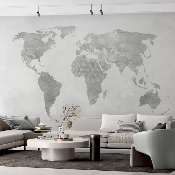 Τοιχογραφίες Παγκόσμιος χάρτης με μοτίβο, μονόχρωμες αποχρώσεις Nr. w03954v1