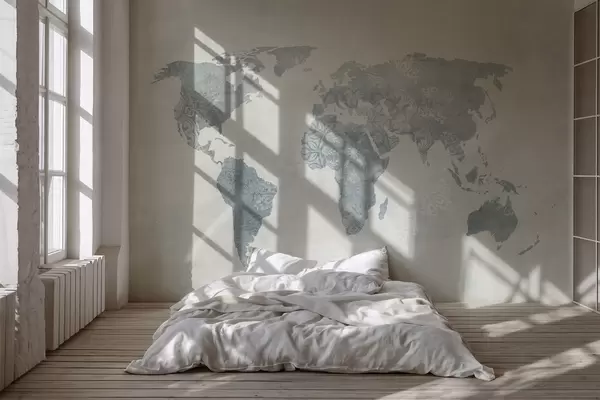 Τοιχογραφίες Παγκόσμιος χάρτης με μοτίβο, μπλε αποχρώσεις Nr. w03954v2