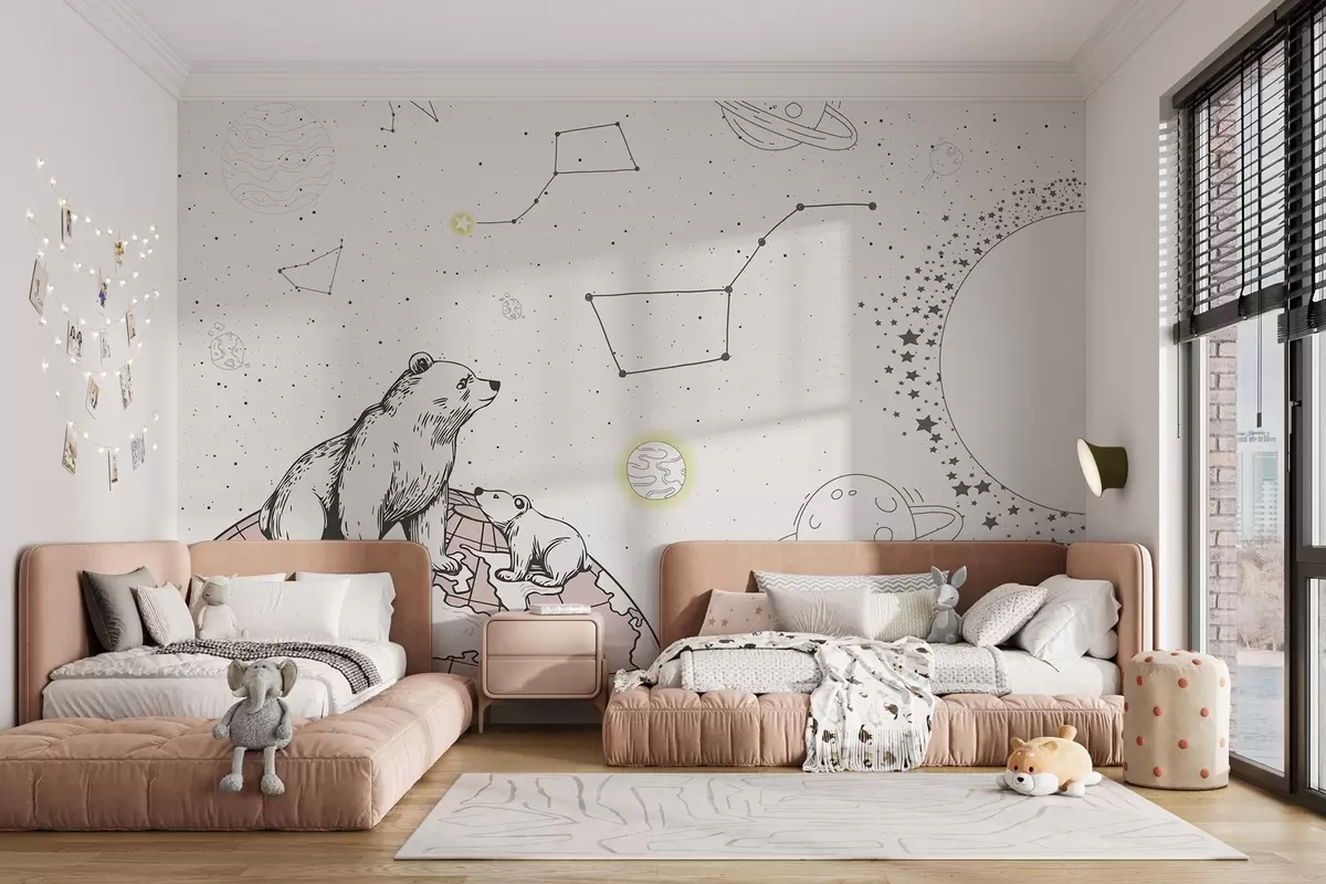 Τοιχογραφίες Αρκούδες και αστέρια σε καφέ φόντο, θέμα αστρονομίας Nr. w04002v2