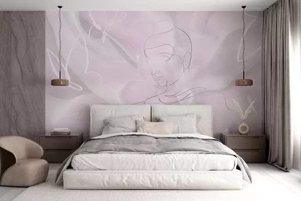 Τοιχογραφίες Floral αφαίρεση με Βούδα σχέδιο γραμμή, ροζ χρώματα Nr. w04004v2