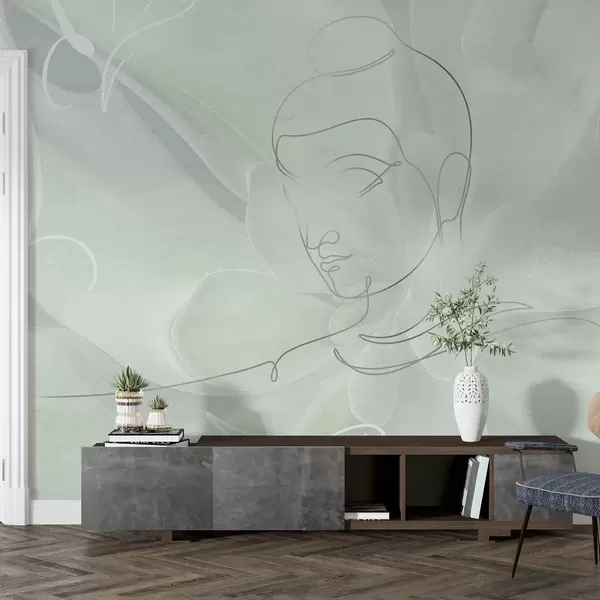 Τοιχογραφίες Floral αφαίρεση με Βούδα σχέδιο γραμμή, πράσινα χρώματα Nr. w04004v3