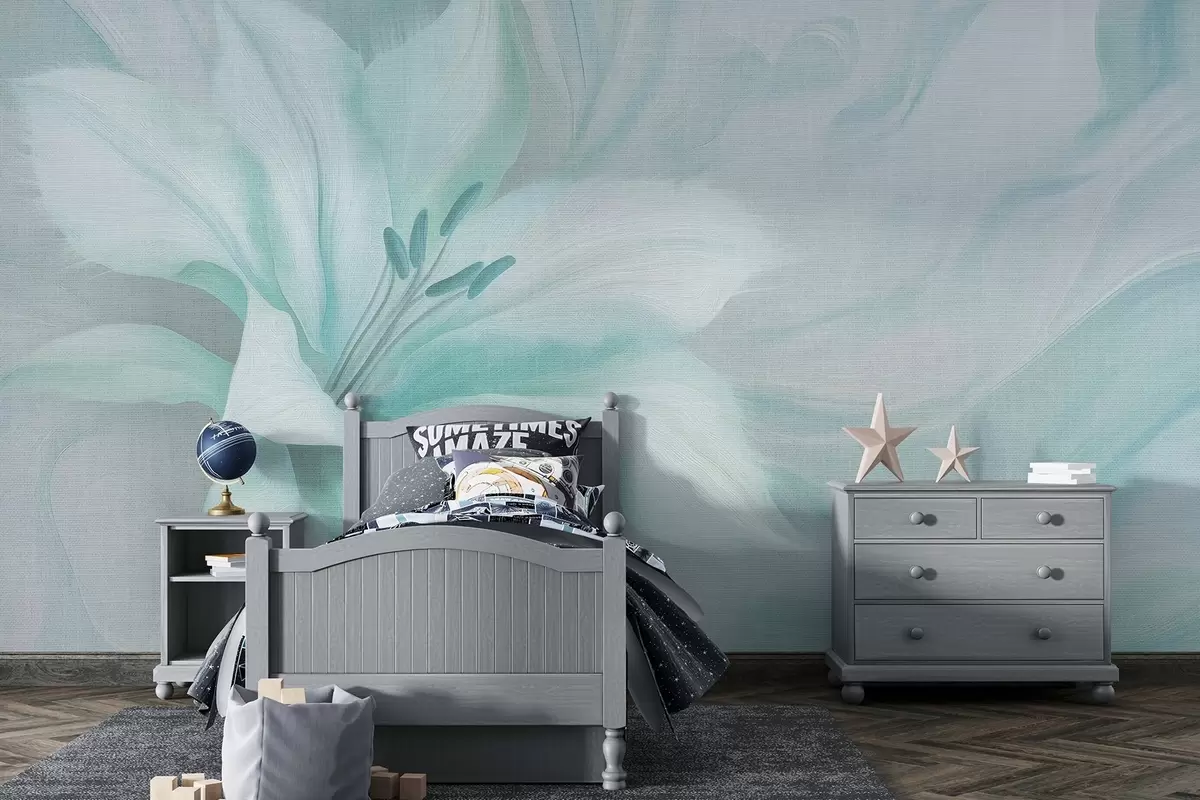 Τοιχογραφίες Λουλούδι κρίνος ρευστή αφαίρεση, floral, aquamarine χρώματα Nr. w04006v3