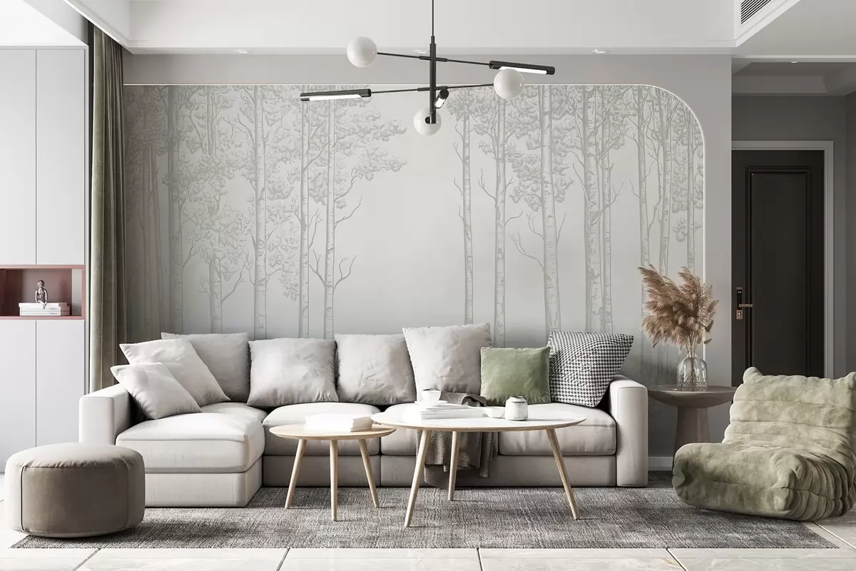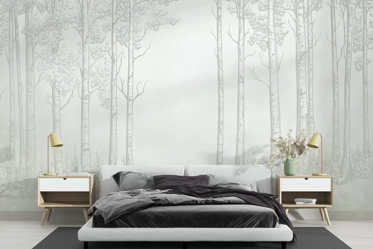 Τοιχογραφίες Δάσος με σημύδες, μινιμαλισμός, φύση, πράσινη παλέτα χρωμάτων Nr. w04009v1