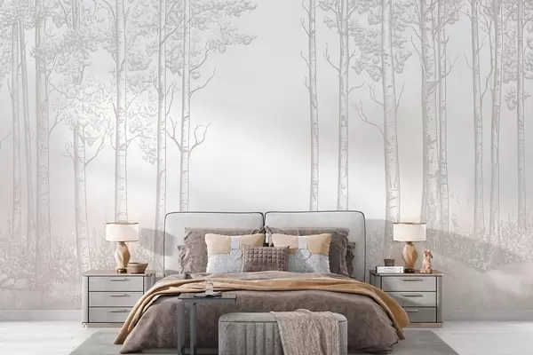 Τοιχογραφίες Δάσος με σημύδες, μινιμαλισμός, φύση, μπεζ χρωματική παλέτα Nr. w04009v3