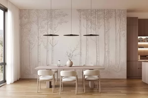 Τοιχογραφίες Δάσος με σημύδες, μινιμαλισμός, φύση, μπεζ χρωματική παλέτα Nr. w04009v3